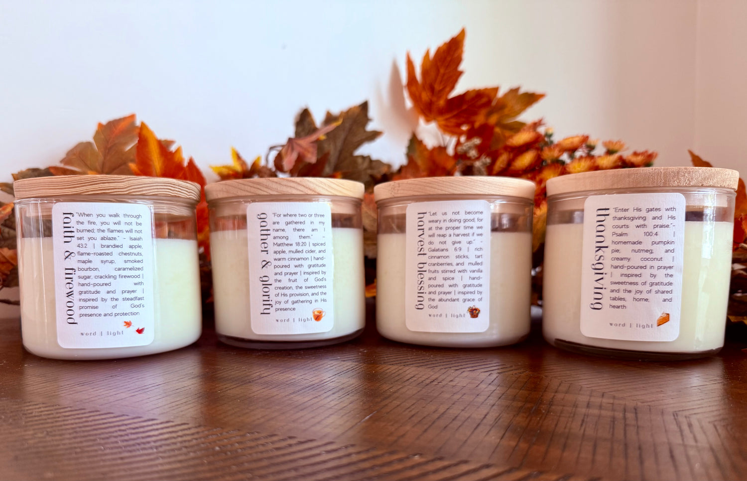 Premium soy candles inspired by Scripture, hand-poured in prayer, and joyfully created to glorify.